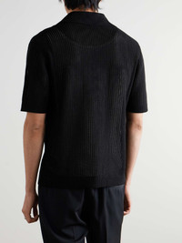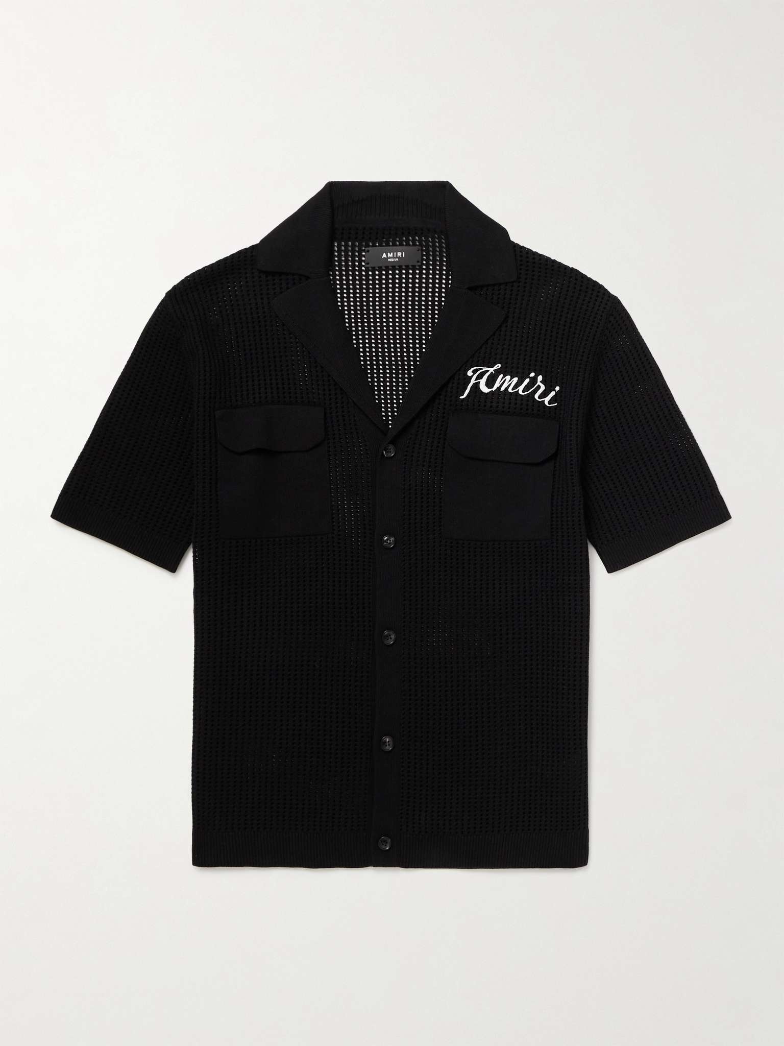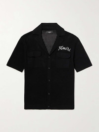 AMIRI constantly references its home town of Los Angeles – this is the kind of style you'd see in Malibu or Santa Monica. It's knitted in an open stitch from soft cotton with a relaxed camp collar and embroidered with the brand's logo. Size & Fit - Fits true to size. Take your normal size - Designed for a relaxed fit - Mid-weight, open knit - Model is shown wearing a M - S/M/L sizing Details & Care - Black cotton - Button fastenings - 100% cotton - Spot clean