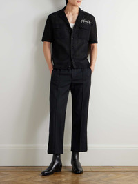 Camp-Collar Logo-Embroidered Open-Knit Cotton Shirt