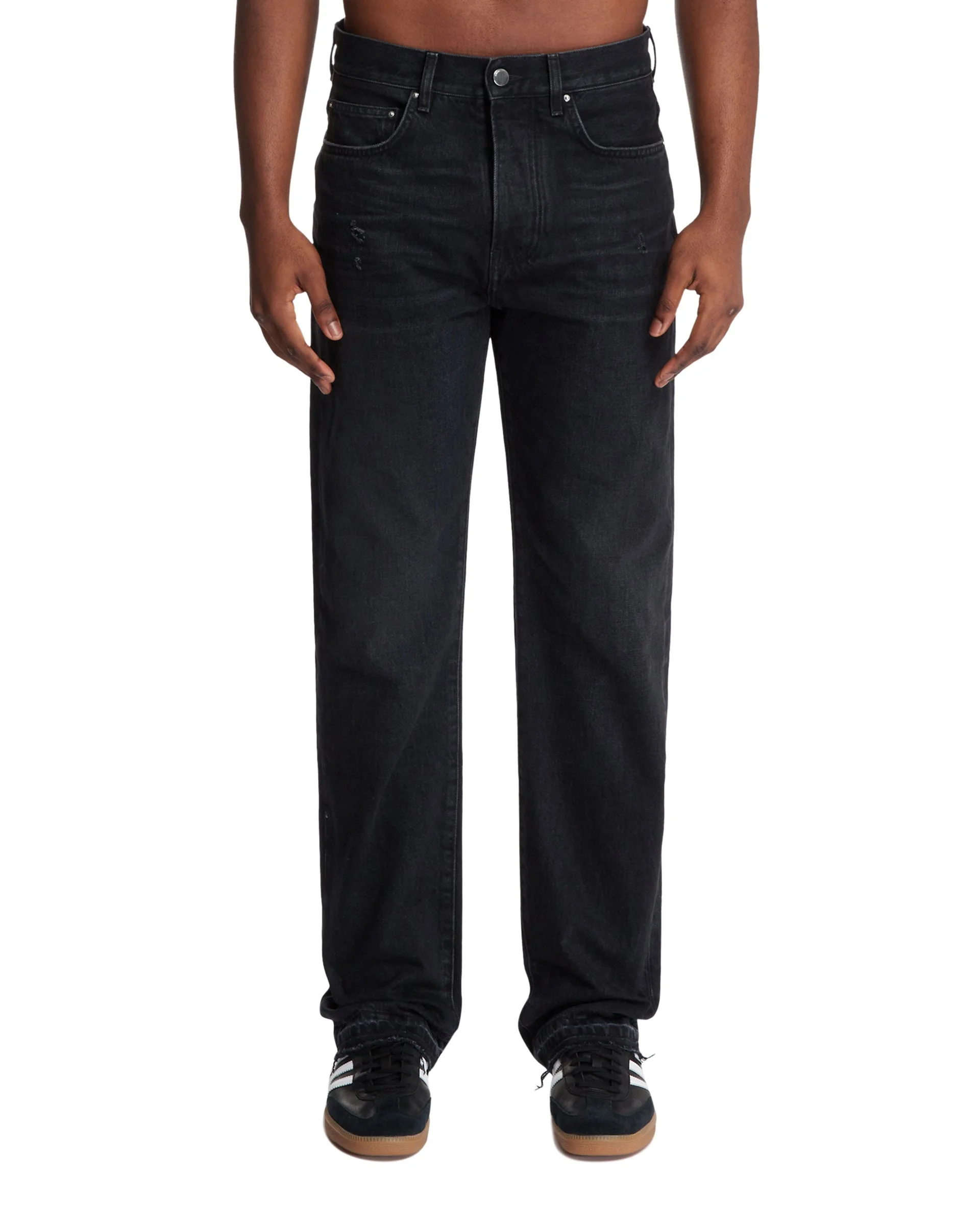 Amiri Black Straight-Leg Jeans. Black cotton denim, regular waist, front button and zip closure, belt loops. Straight leg, logo patch on the back, regular fit. Yoan is 185 cm and he is wearing size 31. DETAILS Model: AMDNGH1031097 Composition: 100% Cotton Made in: ITALY Season: SS25