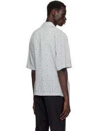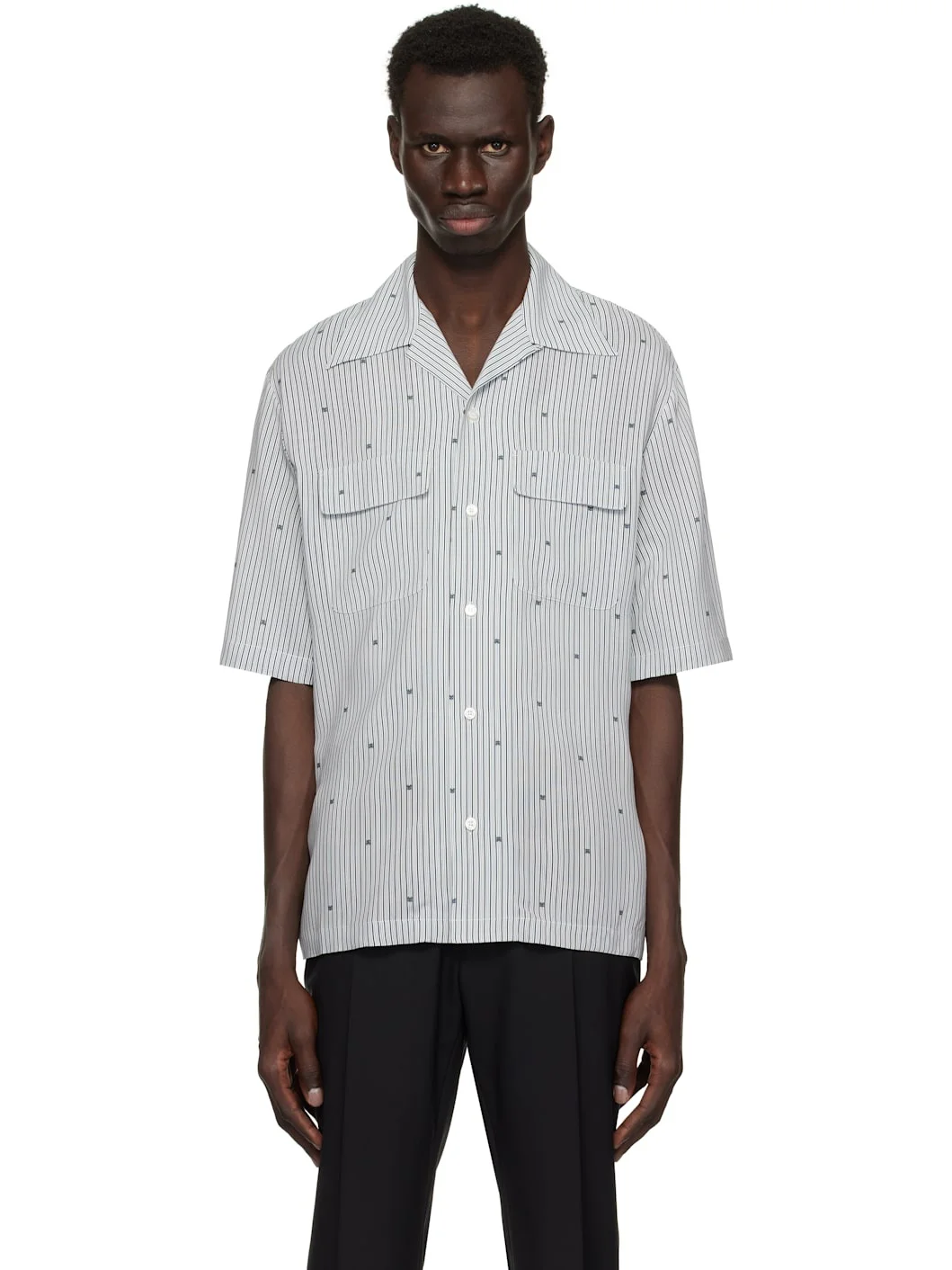 Plain-woven viscose shirt. Pinstripes and logo pattern printed throughout. · Open spread collar · Button closure · Flap pockets at chest Supplier color: Black 100% viscose. Made in Italy 251886M192035