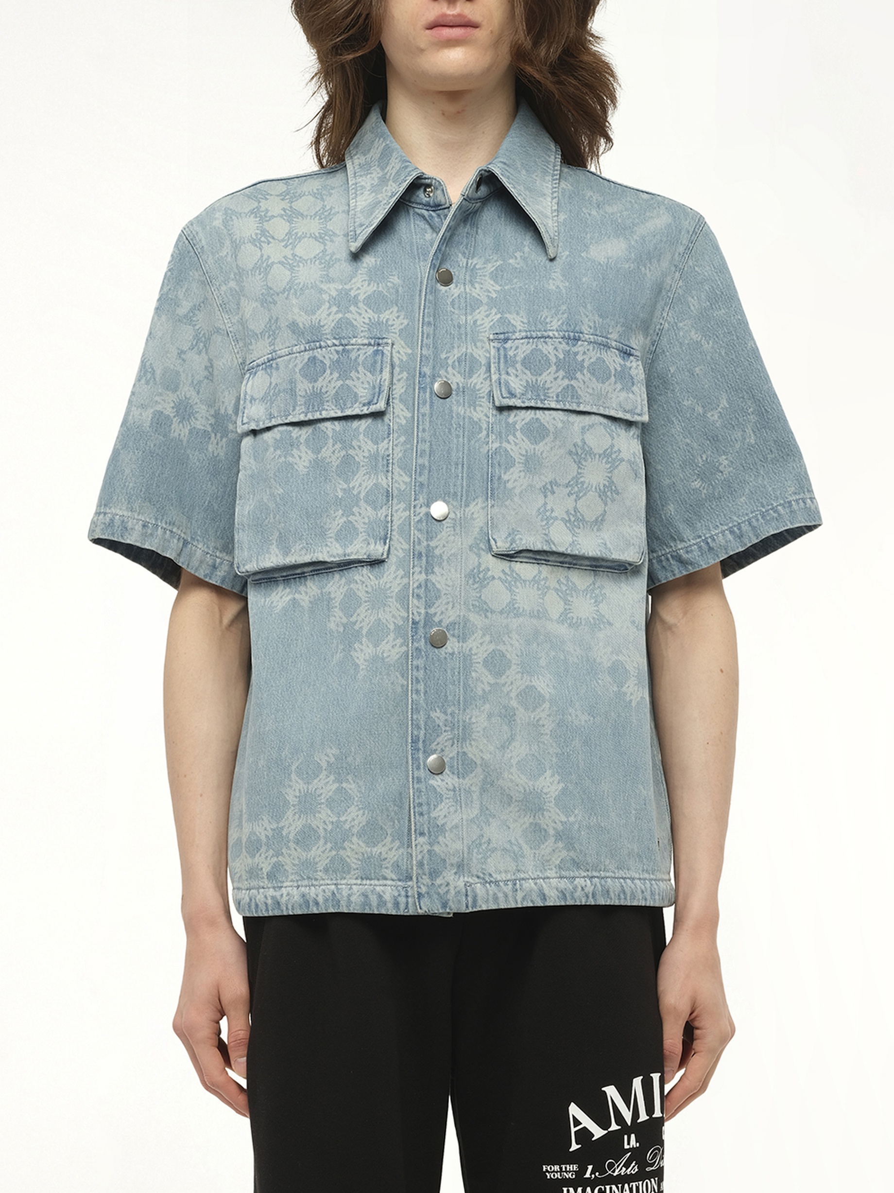 AMIRI's MA Quad Denim Shirt in Indigo is a stylish blend of classic design and modern flair, perfect for elevating any casual ensemble. This shirt is a testament to AMIRI's commitment to quality and fashion-forward thinking. - Composition: 100% Cotton - Indigo wash for a timeless look - Button-down front closure - Chest pockets for added functionality - Signature AMIRI detailing Model is 187 cm and wears size M SKU: AMDNIR1040 417