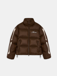 PRE-SPRING 2026 OUTERWEAR REVIVES THE BONES MOTIF, AN AMIRI SIGNATURE TRACING BACK TO THE HOUSE'S ORIGINS IN A ONE-ROOM ATELIER ON L.A.'S ICONIC SUNSET BOULEVARD. THE BONES DOWN JACKET IS CONSTRUCTED WITH DOUBLE-ZIP CLOSURE, SIDE POCKETS, PATCH APPLIQUES, AND AMIRI LOGO AT CHEST. PRE-SPRING 2026 COLLECTION MADE IN ROMANIA 100% NYLON THIS GARMENT HAS UNDERGONE A SPECIAL PROCESS WHICH RESULTS IN INTENTIONAL VARIATIONS OF SHADING AND COLOR, AND ADD TO THE PIECE'S UNIQUE CHARACTERISTICS. THIS MAY LEAD TO BLEEDING OR DYE TRANSFER. PLEASE USE CAUTION WHEN WASHING OR DRY-CLEANING THIS ITEM STYLE:AMOUDW1008-200 SIZE & FIT PRODUCT MEASUREMENTS: CHEST: 51" SHOULDER: 20.625" LENGTH: 27.125" SLEEVE LENGTH: 37.5"