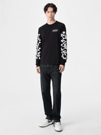 HOUSE ICONOGRAPHY ILLUSTRATES COTTON TEES ROOTED IN WEST COAST SAVOIR-FAIRE. THE BONES STACKED LONG SLEEVE TEE FEATURES THE SIGNATURE BONES MOTIF ON SLEEVES AND CORE LOGO AT CHEST. CORE COLLECTION MADE IN ITALY 100% COTTON STYLE:AMJYTE1076-001 SIZE & FIT MODEL IS WEARING SIZE "M" MODEL MEASUREMENTS: HEIGHT: 6'3 CHEST: 34"" WAIST: 30" HIP: 36" PRODUCT MEASUREMENTS: CHEST: 22" SHOULDER: 18.5" LENGTH: 28" SLEEVE LENGTH: 10" NORMAL FIT