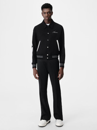 A RENEGADE TAKE ON A CLASSIC OUTERWEAR SILHOUETTE EMERGES AS A DEFINITIVE HOUSE ICON. THE BONES JACKET IS CRAFTED IN WOOL WITH CHENILLE BONE APPLIQUÉ AND FINISHED WITH WELT ZIPPER POCKETS, BANDED RIB ACCENTS AND CLASSIC SNAP FRONT CLOSURE ALONGSIDE THE EMBROIDERED AMIRI SCRIPT LOGO AT CHEST. CORE COLLECTION MADE IN ITALY SHELL: WOOL, LINING: NYLON