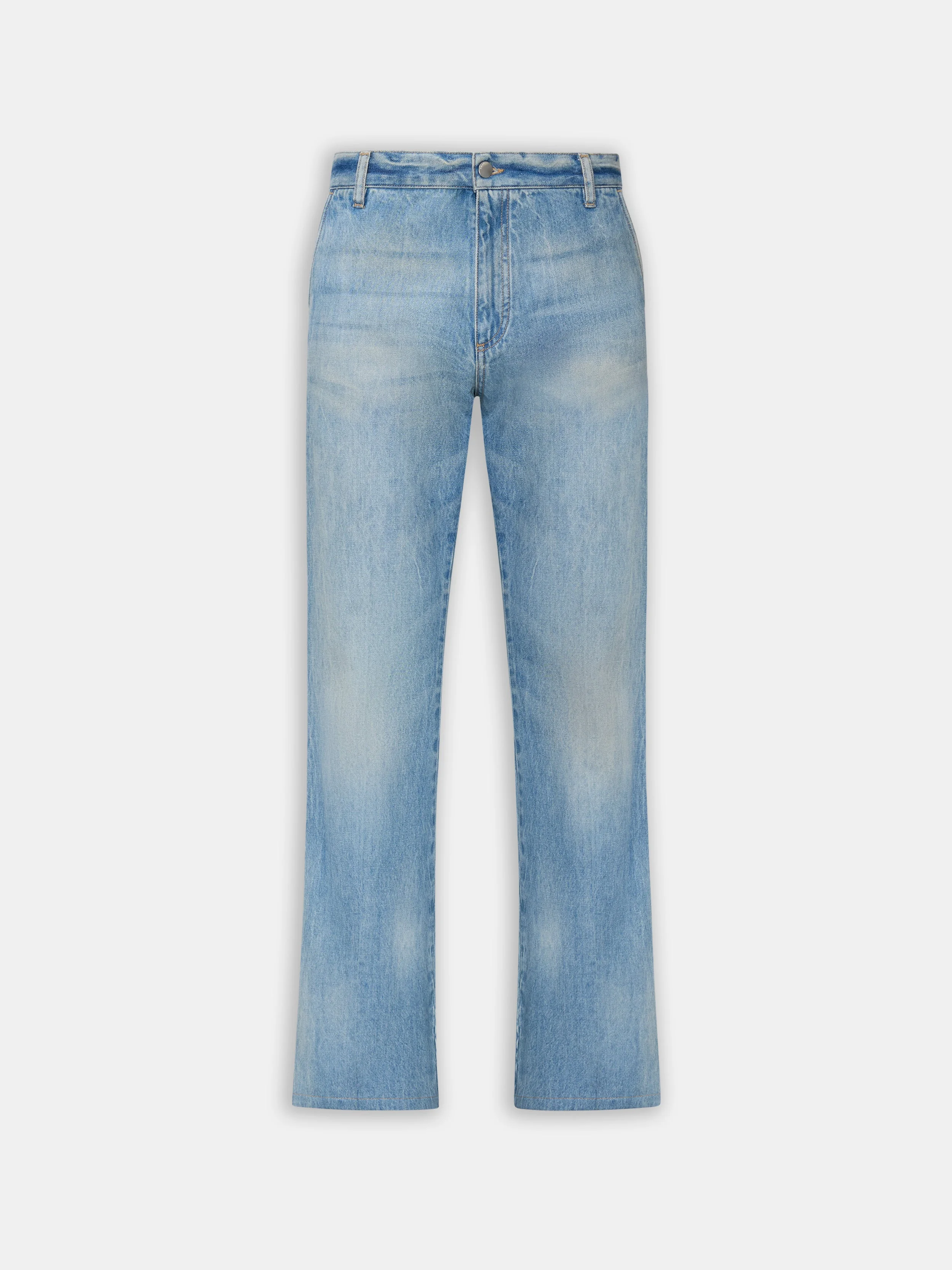 SPRING-SUMMER 2026 PRESENTS HOUSE SIGNATURE DENIM IN NEW SEASONAL RENDITIONS. THE BOOT CUT JEAN IS WASHED FOR A LIVED-IN APPEARANCE AND FINISHED WITH CLASSIC FIVE-POCKET DETAILING. SPRING-SUMMER 2026 COLLECTION MADE IN ITALY 100% COTTON THIS GARMENT HAS UNDERGONE A SPECIAL PROCESS WHICH RESULTS IN INTENTIONAL VARIATIONS OF SHADING AND COLOR, AND ADD TO THE PIECE'S UNIQUE CHARACTERISTICS. THIS MAY LEAD TO BLEEDING OR DYE TRANSFER. PLEASE USE CAUTION WHEN WASHING OR DRY-CLEANING THIS ITEM STYLE:AMBMJE1092-571 SIZE & FIT MODEL MEASUREMENTS: HEIGHT: 6’2” CHEST: 35.5" WAIST: 28" HIP: 34.5" PRODUCT MEASUREMENTS (SIZE 30): WAIST: 32" RISE: 11.25" HIP: 41" INSEAM: 34"