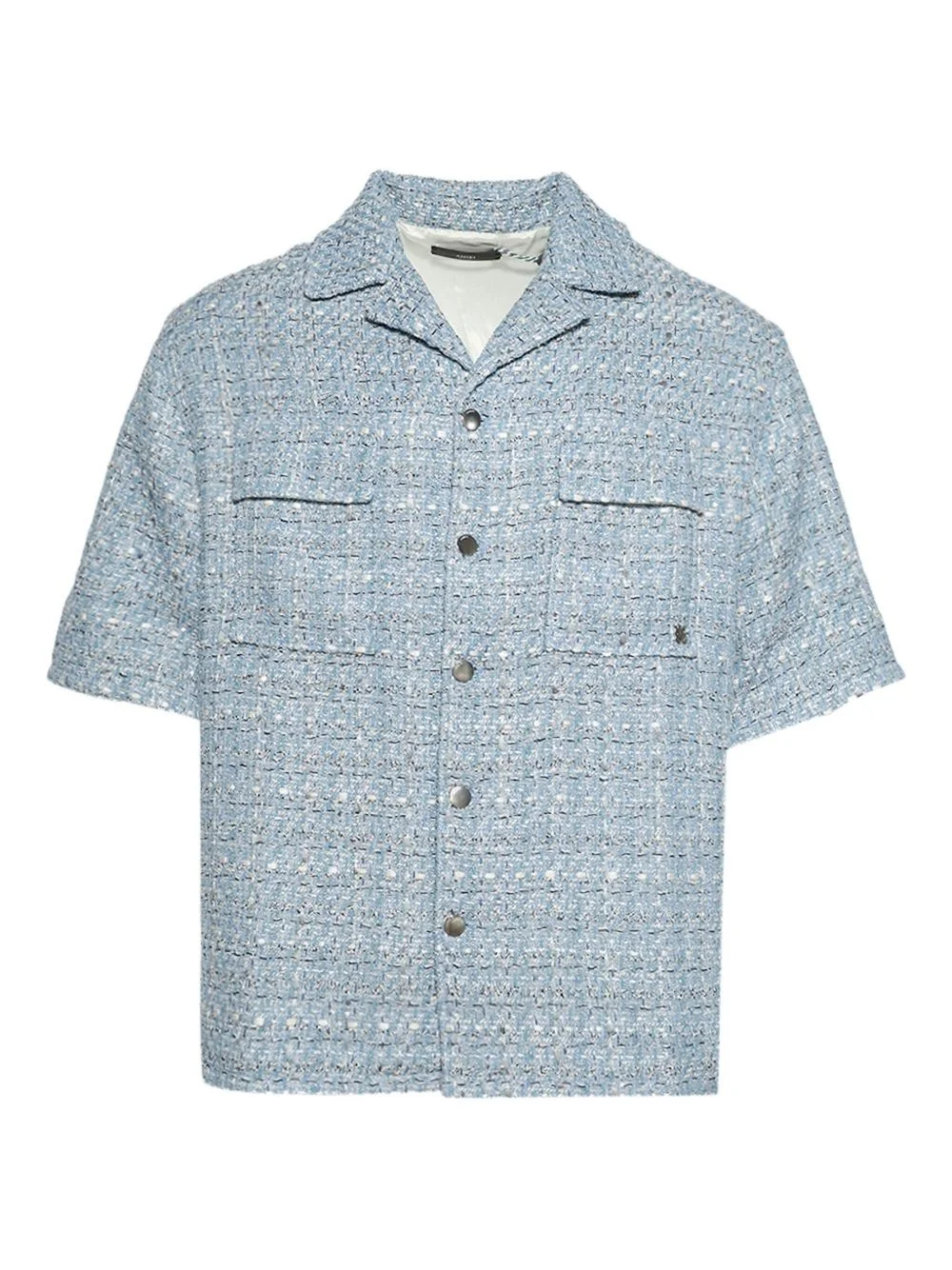 tweed shirt Highlights - Light blue - Tweed texture - Short sleeves - Camp collar - Button fastening - Flap pockets Imported Composition Fabric 100% Washing instructions Read Manufacturer Guidelines