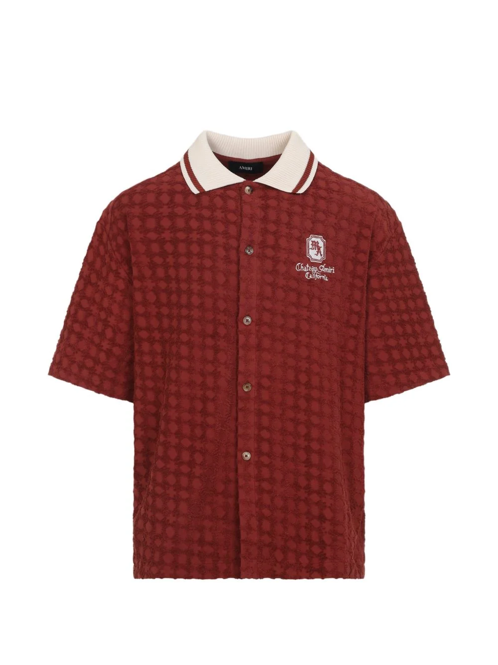 embroidered-detail shirt Highlights - Terracotta red - Terry-towelling texture - Embroidered detail - Button fastening - Ribbed collar Imported Composition Cotton 100% Washing instructions Read Manufacturer Guidelines