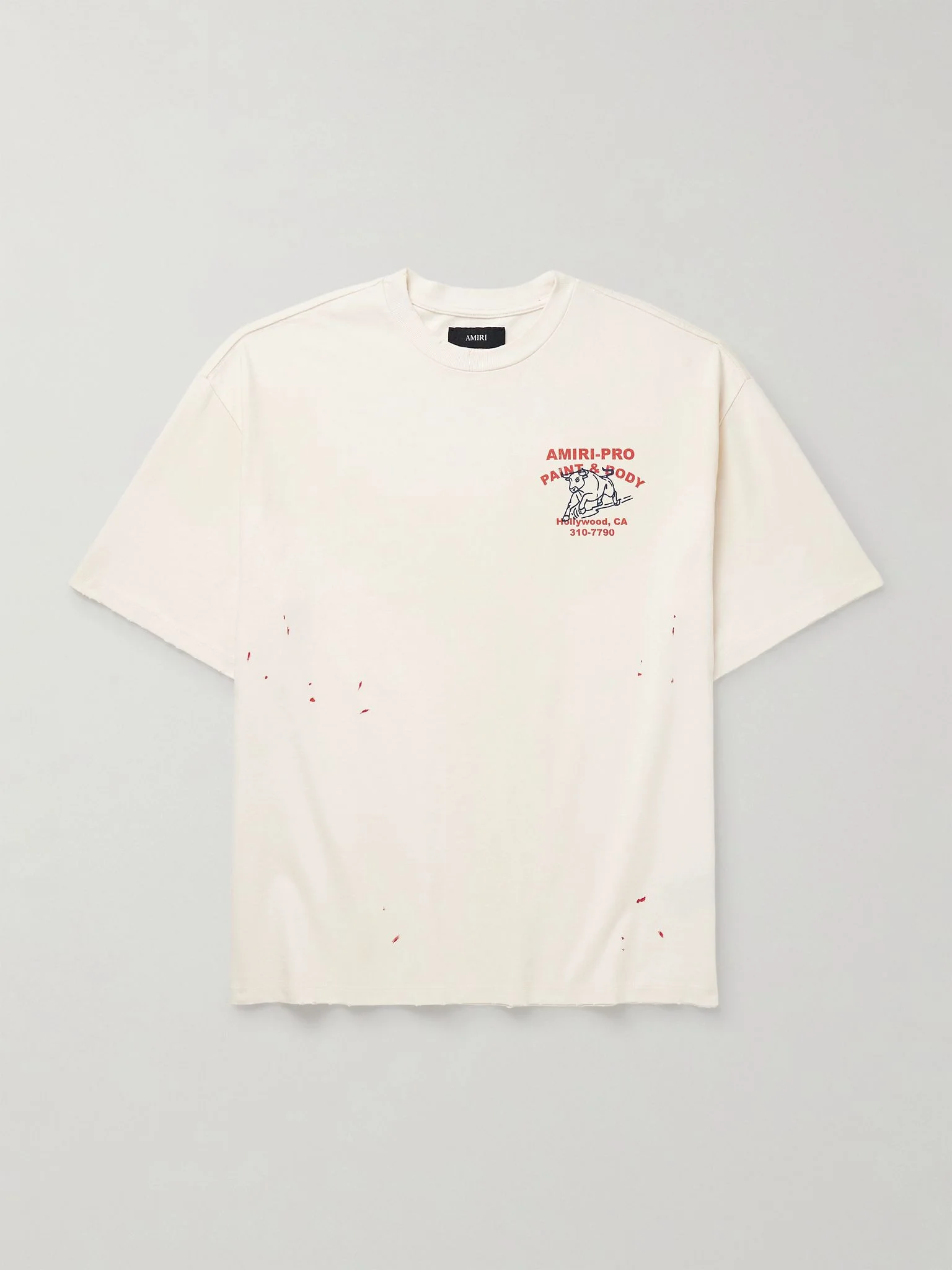AMIRI's T-shirt is designed to feel like a vintage favourite. It's cut from cotton-jersey that's paint-splattered and printed with a graphic inspired by body shops. Size & Fit - Intended to be oversized; we recommend sizing down if you prefer a closer fit - Weighted, stretchy fabric - Model is shown wearing a M - Model measures: chest 38"/ 96cm, height 6'2"/ 188cm Details & Care - Cream, red and navy cotton-jersey - 100% cotton; trim: 97% cotton, 3% elastane - Dry clean