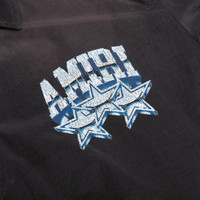 The Amiri Championship Coach Jacket in Black combines functionality with sleek design. Made from water-resistant nylon, this jacket is built for versatile wear. It features a button-up closure, side pockets for practicality, and bold printed logos on the chest and back, making it a standout layer for any wardrobe. - 100% Nylon - Water-resistant - Button up closure - Side pockets - Printed logo at chest and back - Style No: AMOULW1024-00