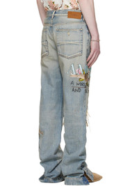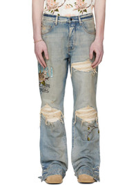 Non-stretch denim jeans. · Fading and hand-distressing throughout · Belt loops · Five-pocket styling · Button fly · Quilted underlay at rips · Press-stud vent at cuffs · Logo graphic and text embroidered at outseams · Suede logo patch at back waistband · Logo-engraved silver-tone hardware Supplier color: Aged Indigo 100% cotton. Made in Italy 261886M186056