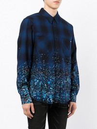 CRYSTAL PAINTER FLANNEL Casual Button-Down Shirts "Blue" Highlights - Dark blue/black - Cotton - Check print - Paint splatter detail - Classic collar - Front button fastening - Long sleeves - Two chest patch pockets - Silver-tone logo plaque - Frayed hem Made in United States Composition Cotton 100% Washing instructions Dry Clean Only