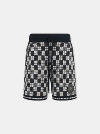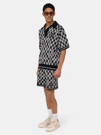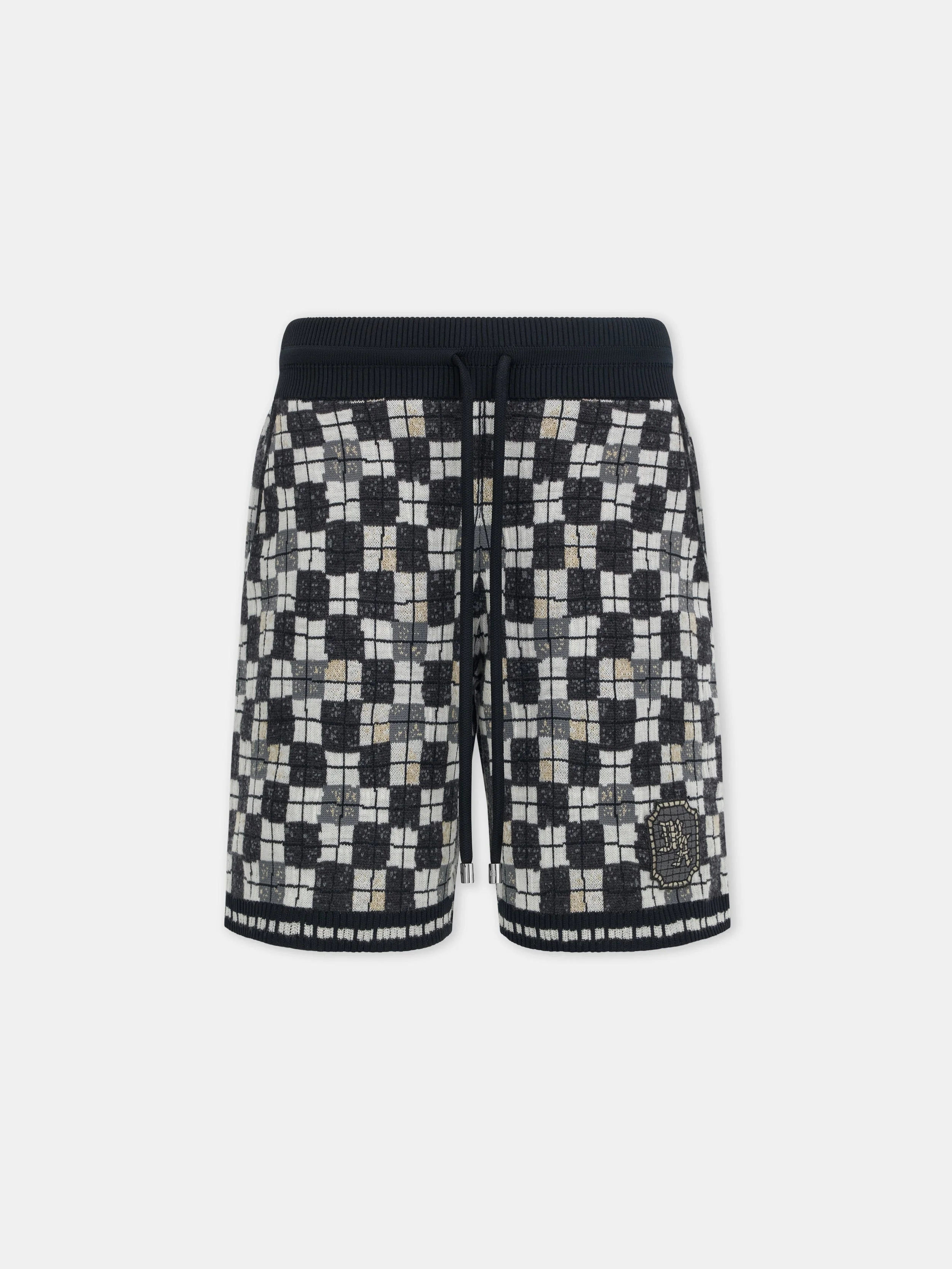 THE HOUSE'S SIGNATURE CHECKERBOARD PRINT APPEARS ACROSS MEN'S KNITWEAR FOR SPRING-SUMMER 2026. THE CHATEAU CREST SHORT IS CRAFTED WITH CONTRAST RIB KNIT FINISHES, AN ELASTIC WAISTBAND WITH DRAWCORD, SIDE SEAM POCKETS, AND EMBROIDERED PATCH APPLIQUE OF THE SEASONAL MOSAIC LOGO. SPRING-SUMMER 2026 COLLECTION MADE IN ITALY 100% POLYESTER THIS GARMENT HAS UNDERGONE A SPECIAL PROCESS WHICH RESULTS IN INTENTIONAL VARIATIONS OF SHADING AND COLOR, AND ADD TO THE PIECE'S UNIQUE CHARACTERISTICS. THIS MAY LEAD TO BLEEDING OR DYE TRANSFER. PLEASE USE CAUTION WHEN WASHING OR DRY-CLEANING THIS ITEM STYLE:AMBMSO1045-001 SIZE & FIT MODEL MEASUREMENTS: HEIGHT: 6'2" CHEST: 33.5" WAIST: 28.5" HIP: 36" PRODUCT MEASUREMENTS (SIZE M): WAIST: 30"" RISE: 13" HIP: 41.5" INSEAM: 9.5"