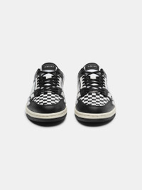 PRE-FALL 2024 FOOTWEAR RECASTS THE HOUSE'S ICONIC SKEL TOP SILHOUETTE IN NEW, SEASONAL FABRICATIONS. THE CHECKERED SKEL TOP LOW IS CRAFTED IN SOLID AND BLACK-AND-WHITE CHECKERED LEATHER ON A TWO-TONE RUBBER SOLE WITH PERFORATED DETAILING AND SIGNATURE GRAPHICS. PRE-FALL 2024 COLLECTION MADE IN VIETNAM UPPER: LEATHER/TETORON, SOLE: RUBBER