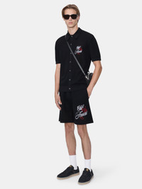 FOR AUTUMN-WINTER 2025, THE SPIRIT OF LOS ANGELES REMAINS AT THE HEART OF AMIRI, WITH GRAPHICS THAT IDEALIZE A FICTIONAL HOLLYWOOD VENUE. THE CLUB AMIRI CROCHET SHORT IS ILLUSTRATED WITH SEASONAL LOGO EMBROIDERY AND FINISHED WITH SIDE POCKETS AND AN ELASTIC WAIST WITH DRAWCORD. AUTUMN-WINTER 2025 COLLECTION MADE IN ITALY 70% VISCOSE, 30% POLYESTER THIS GARMENT HAS UNDERGONE A SPECIAL PROCESS WHICH RESULTS IN INTENTIONAL VARIATIONS OF SHADING AND COLOR, AND ADD TO THE PIECE'S UNIQUE CHARACTERISTICS. THIS MAY LEAD TO BLEEDING OR DYE TRANSFER. PLEASE USE CAUTION WHEN WASHING OR DRY-CLEANING THIS ITEM STYLE:AMKNSH1043-001 SIZE & FIT MODEL MEASUREMENTS: HEIGHT: 6’1.5" CHEST: 36.5" WAIST: 28" HIP: 36" PRODUCT MEASUREMENTS (SIZE M): WAIST: 31" RISE: 10.75" HIP: 44.5" INSEAM: 7.5"