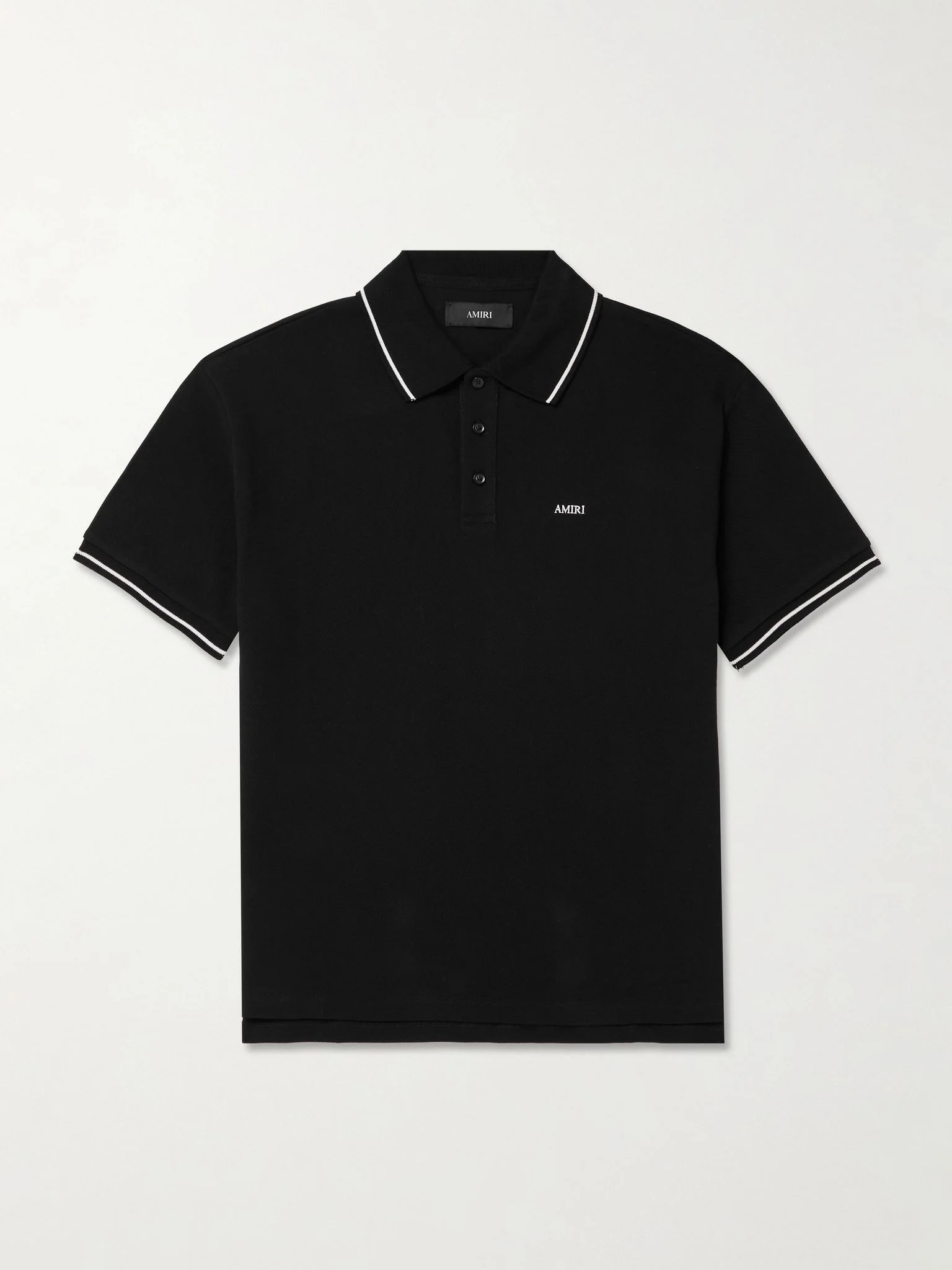 AMIRI’s polo shirt is embroidered with the label’s moniker in contrasting threads to match the striped tipping. It’s cut from cotton-pique and fastens with tonal buttons. Wear yours with the label’s distressed jeans. Size & Fit - Fits true to size. Take your normal size - Designed for a regular fit - Mid-weight, slightly stretchy fabric - Model is shown wearing a M - Model measures: chest 38"/ 96cm, height 6'2"/ 188cm Details & Care - Black and white cotton-pique - Button fastenings - 100% cotton - Dry clean