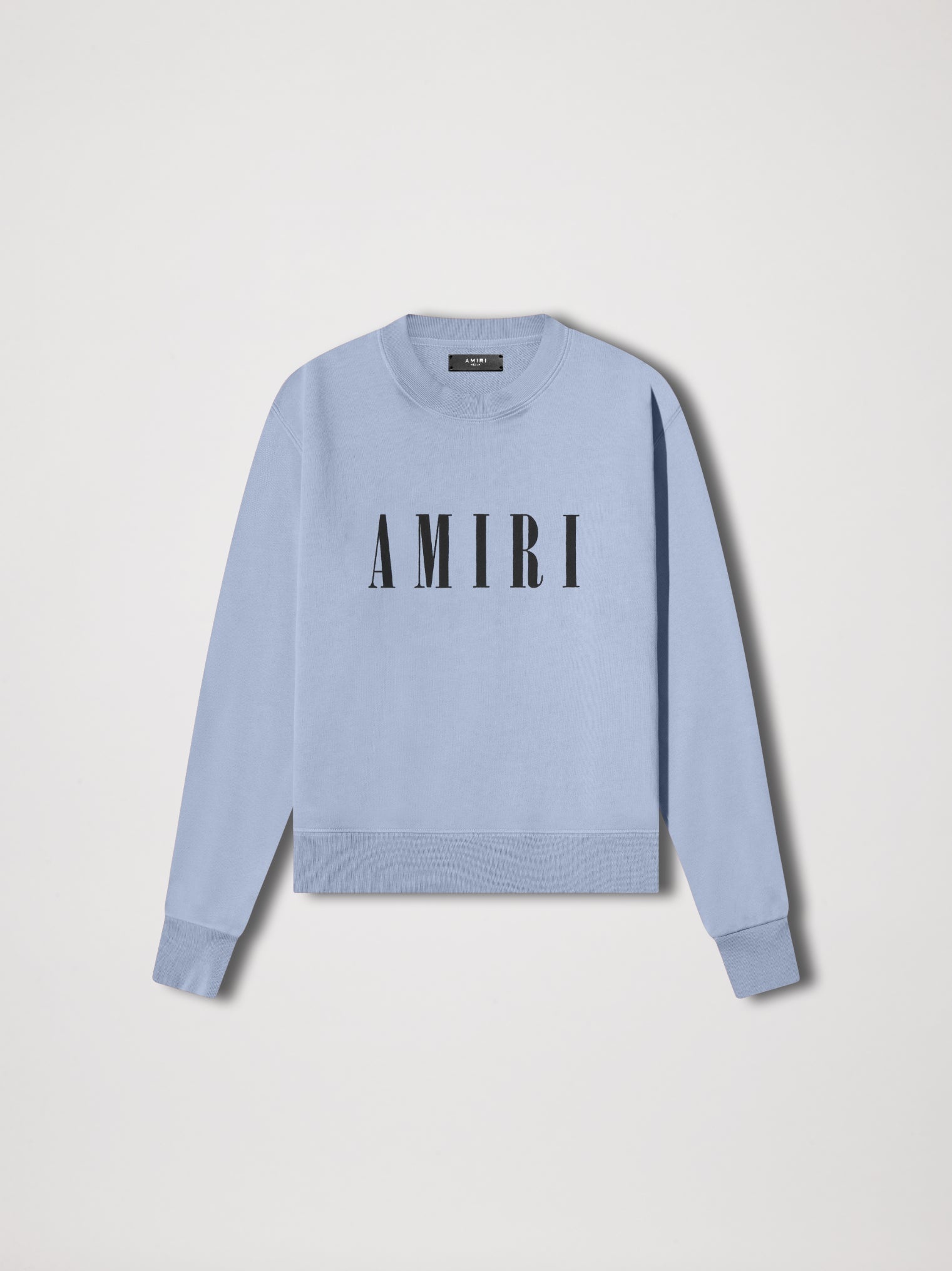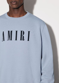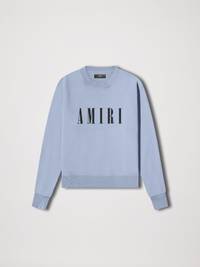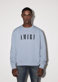 PF22 COLLECTION COTTON CREW. FEATURING AMIRI LOGO. MADE IN LOS ANGELES, CA REGULAR FIT MODEL IS 6'2" AND WEARS A SIZE MEDIUM WE RECOMMEND SIZING UP FOR A LOOSER FIT DETAILS & CARE 100% COTTON DRY CLEAN RECOMMENDED