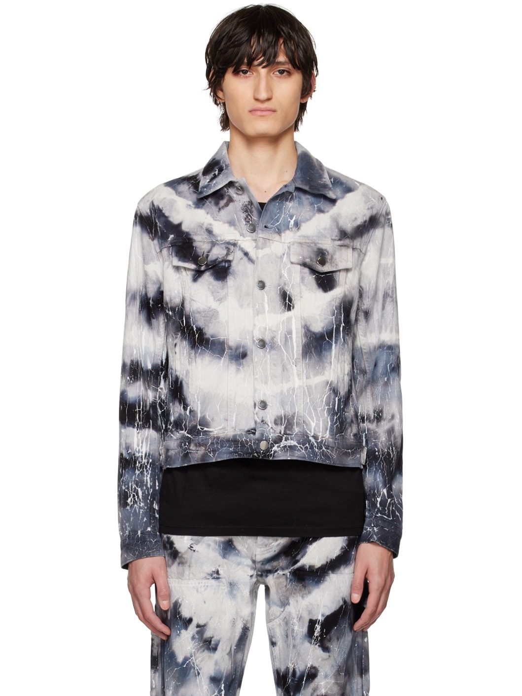 Non-stretch denim jacket. Tie-dye and paint splatter throughout. · Spread collar · Button closure · Flap and welt pockets · Single-button barrel cuffs · Button tabs at back hem · Leather logo patch at back hem Each item is unique. Please note coloration may vary. Supplier color: Black