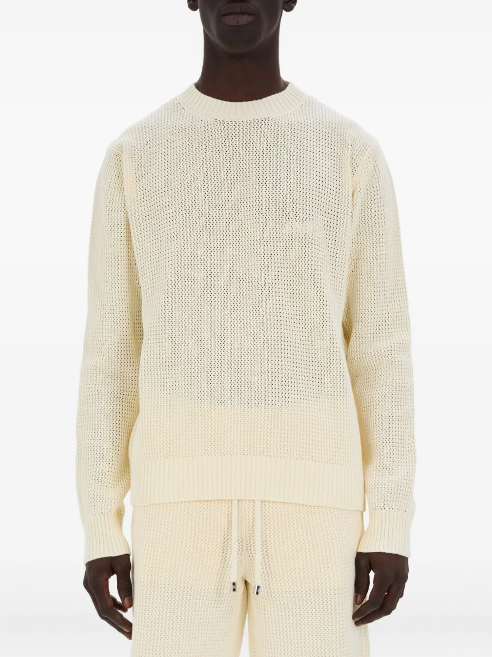 waffle-knit crew-neck sweater Highlights - Off-white - Waffle knit - Crew neck - Long sleeves - Ribbed cuffs and hem Made in Italy Composition Fabric 100% Washing instructions Read Manufacturer Guidelines