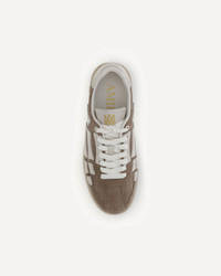 Croc Debossed Pacific Bones Sneakers by Amiri represent a refined reinterpretation of the maison's iconic Pacific model inspired by classic sports sneakers. Made of suede with a croc effect, they stand out for their low, sleek profile that enhances their sporty elegance. The rubber sole is decorated with the iconic MA motif, while the upper features leather bone appliques, a distinctive and signature detail of the brand. DETAILS - Sku: AMFOSR1177_MALT - Season: AW25 - Composition: UPPER 100% Calf Leather Bos Taurus SOLE 100% Rubber - MADE IN VIETNAM
