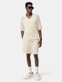 HOUSE SIGNATURE GRAPHICS ILLUSTRATE MEN'S KNITWEAR FOR PRE-FALL 2025. THE AMIRI CROCHET MESH SHORT IN COTTON FEATURES MONOCHROME EMBROIDERY AND IS FINISHED WITH AN ELASTIC WAIST WITH DRAWCORD. PRE-FALL 2025 COLLECTION MADE IN ITALY 100% COTTON THIS GARMENT HAS UNDERGONE A SPECIAL PROCESS WHICH RESULTS IN INTENTIONAL VARIATIONS OF SHADING AND COLOR, AND ADD TO THE PIECE'S UNIQUE CHARACTERISTICS. THIS MAY LEAD TO BLEEDING OR DYE TRANSFER. PLEASE USE CAUTION WHEN WASHING OR DRY-CLEANING THIS ITEM STYLE:AMKNSH1047-127 SIZE & FIT MODEL IS WEARING SIZE M MODEL MEASUREMENTS: HEIGHT: 6’2” CHEST: 35.5" WAIST: 28" HIP: 34.5" PRODUCT MEASUREMENTS (SIZE M): WAIST: 31" RISE: 10.75" HIP: 44.5" INSEAM: 7.5"