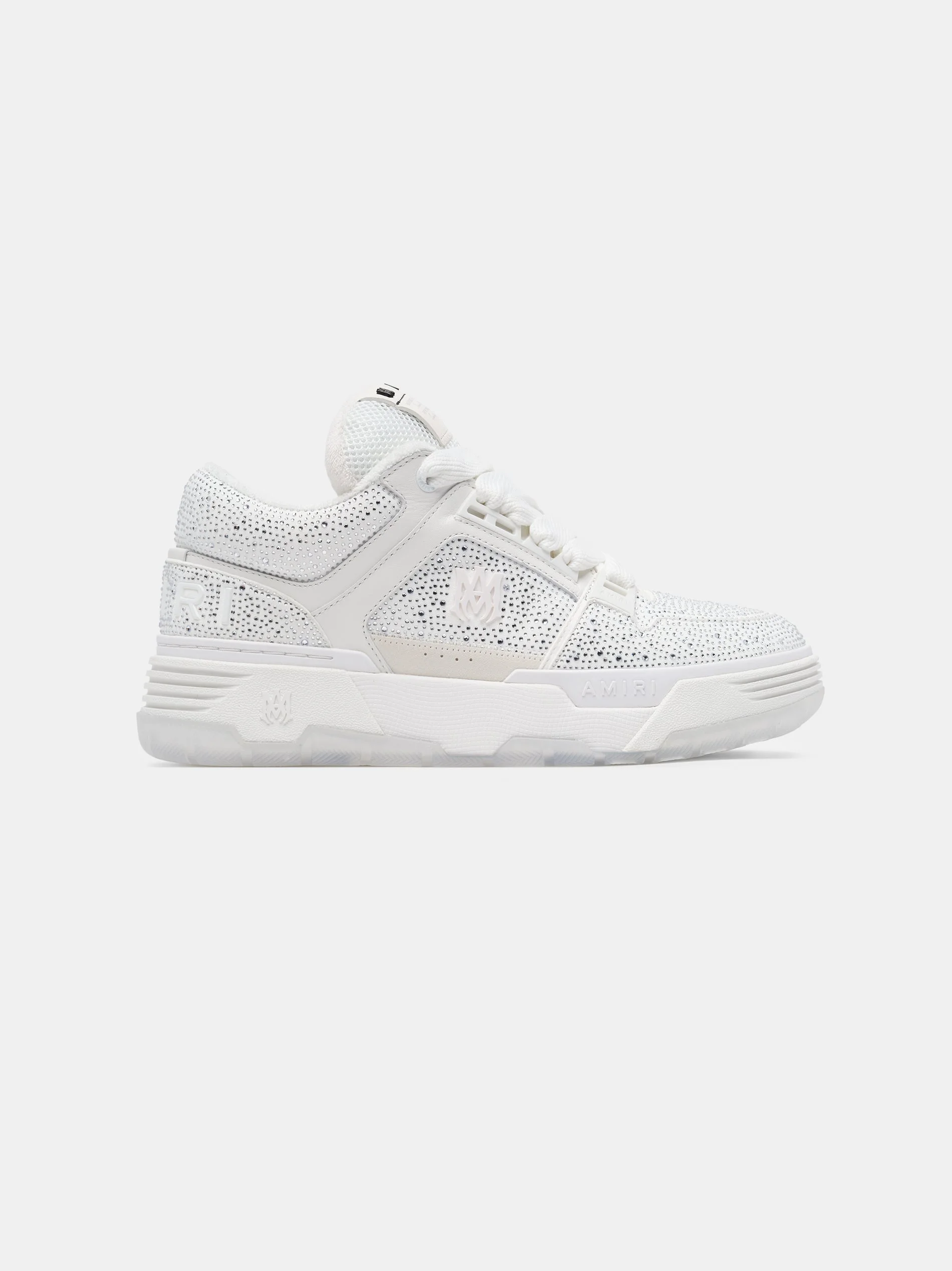THE MA-1, AN ODE TO THE BOLD, AMPLIFIED SNEAKER SILHOUETTES OF '90S WEST COAST SKATE RENEGADES, APPEARS IN SEASONAL FABRICATIONS FOR PRE-FALL 2024. THE CRYSTAL MA-1 IS CRAFTED ON AN EXAGGERATED RUBBER OUTSOLE WITH A CRYSTAL-EMBELLISHED LEATHER UPPER AND FEATURES HOUSE LOGOS ON THE SIDE AND BACK WITH DOUBLE LACE FASTENING. PRE-FALL 2024 COLLECTION MADE IN VIETNAM UPPER: LEATHER, NYLON, POLYURETHANE, POLYESTER SOLE: RUBBER STYLE:AMFOSR1038-100