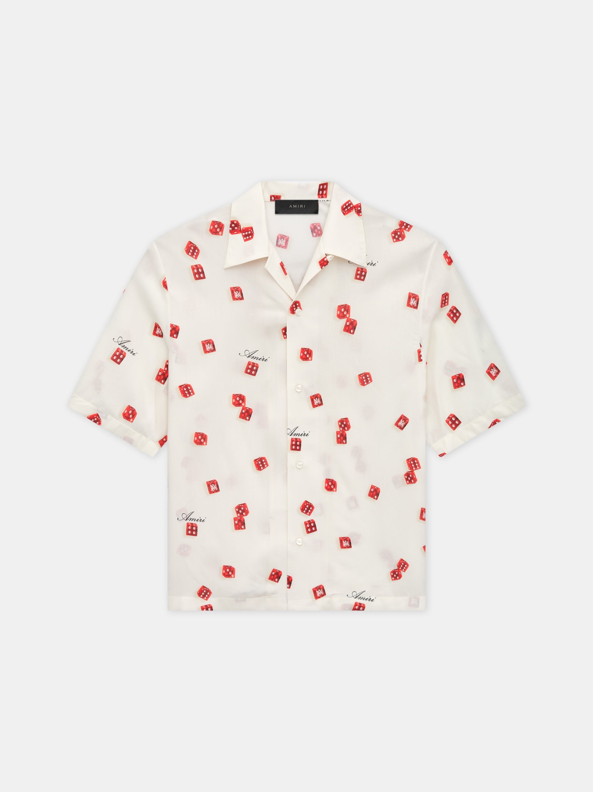 FOR PRE-SPRING 2025, MOTIFS DRAW FROM THE VISUAL CUES OF LATE-NIGHT LOUNGES OF LOS ANGELES IN THE '70S. THE AMIRI DICE BOWLING SHIRT IS FINISHED WITH NOTCHED COLLAR AND BUTTON-DOWN CLOSURE. PRE-SPRING 2025 COLLECTION MADE IN ITALY 100% VISCOSE STYLE:AMSTCA1093-271 SIZE & FIT MODEL IS WEARING SIZE "M" MODEL MEASUREMENTS: HEIGHT: 6'1 CHEST: 35" WAIST: 27" PRODUCT MEASUREMENTS (SIZE “M”): CHEST: 44" SHOULDER: 18" LENGTH: 27.5" SLEEVE LENGTH: 12.5"