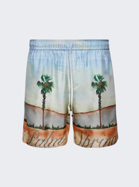 Details - Relaxed silhouette - Drawstring elastic waist - Mid rise - Straight cut - Crafted from silk - Palm springs printed design throughout Dimensions: Model is 6'1"/185cm and is wearing a size M Composition: silk Care: Care according to label Brand Style: EXMPB004 Designer/Brand: AMIRI