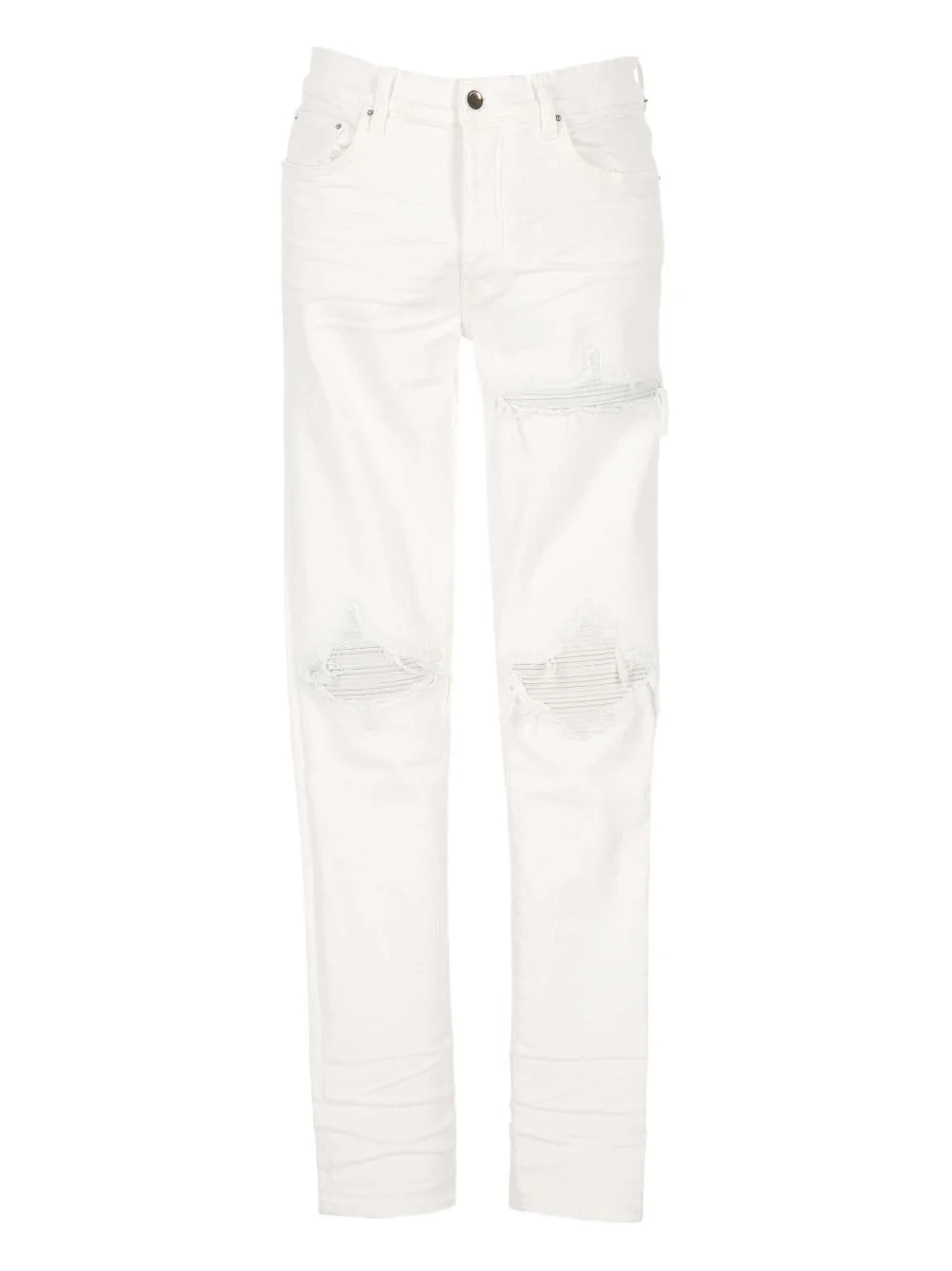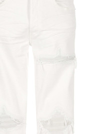 distressed jeans Highlights - White - Distressed detailing - Faded effect - Frayed hems - Straight leg Made in United States Composition Cotton 92%, Elastomultiester 6%, Elastane 2% Washing instructions Read Manufacturer Guidelines