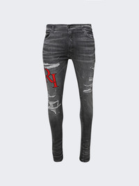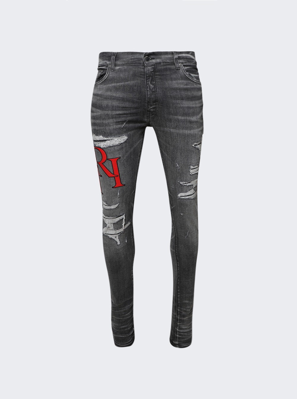 Details - Straight leg - Varsity logo detail - Five-pocket design - Distressed detailing - Topstitching - Full length Dimensions: Model is 6'1"/185cm and is wearing a size US33 Composition: Fabric Blend Care: Care according to label Brand Style: AMDNSY1060 Designer/Brand: AMIRI