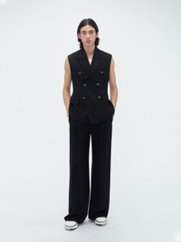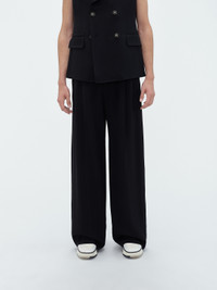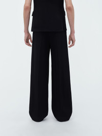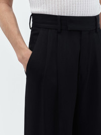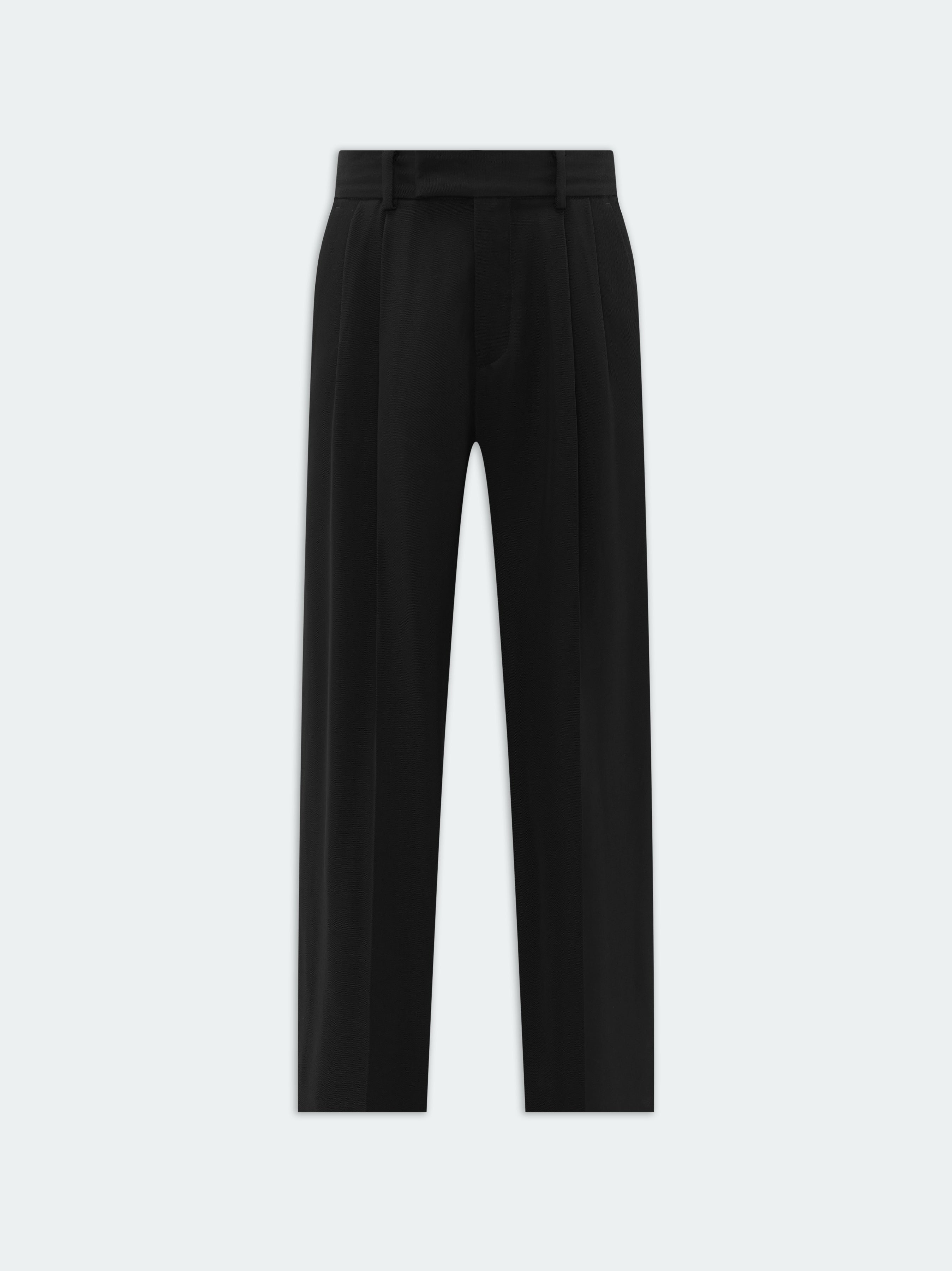 THE HOUSE'S SIGNATURE DOUBLE PLEATED PANT RECASTS TAILORED SUITING TROPES THROUGH A RELAXED, CONTEMPORARY LENS. CRAFTED WITH SIDE SEAM POCKETS AND CONCEALED HOOK-AND-ZIP CLOSURE, THESE SOFTLY STRUCTURED PANTS ARE A VERSATILE WARDROBE STAPLE. THESE PANTS PAIR WITH HOUSE SHIRT AND JACKET OFFERINGS FOR A LOOK OF LANGUID EASE. SPRING-SUMMER 2024 COLLECTION MADE IN ITALY 100% VISCOSE DRY CLEAN