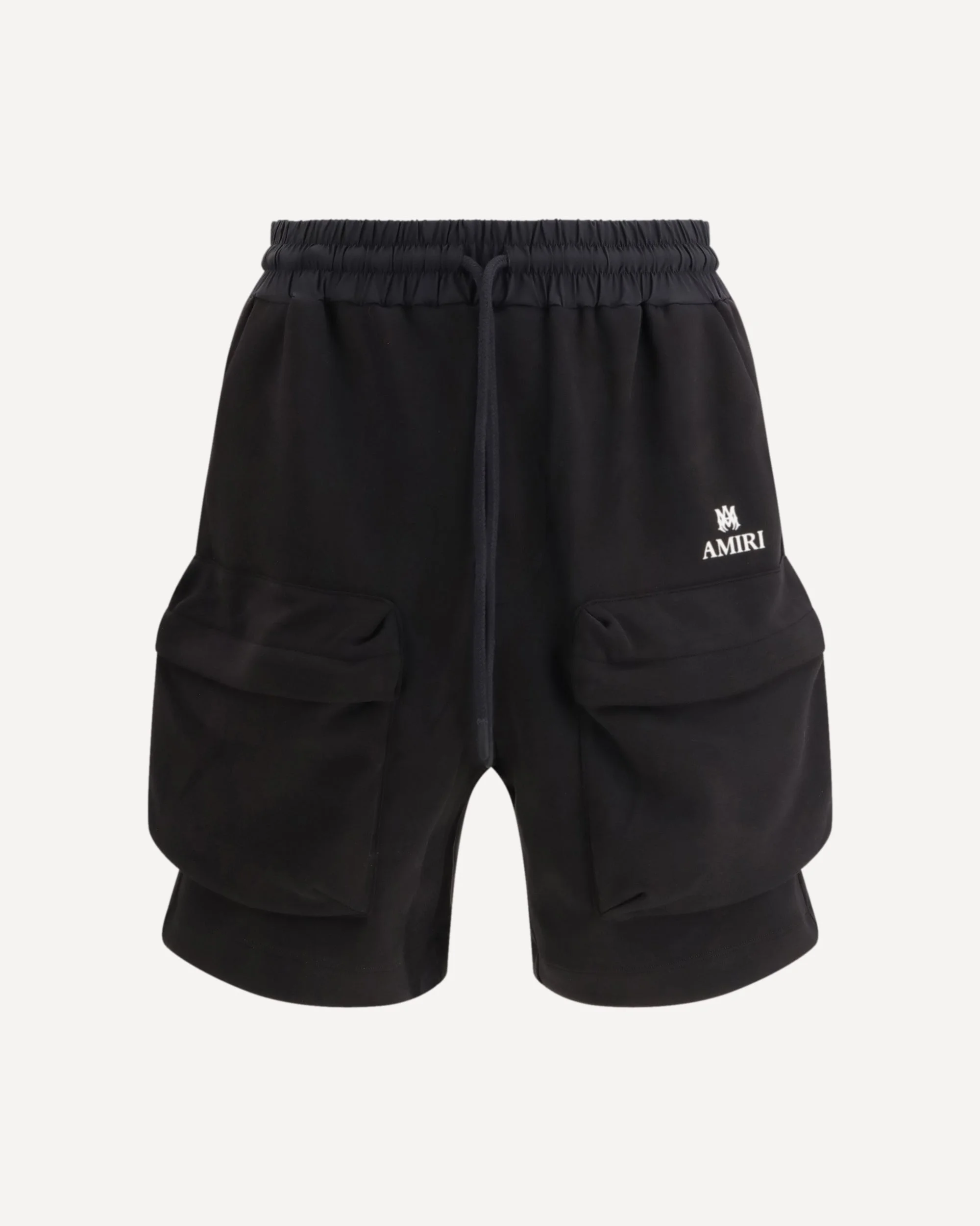 The drawstring-waist cargo track Shorts by AMIRI blend a sporty attitude with the brand’s distinctive aesthetic. The elasticated waistband with drawstring ensures a relaxed and functional fit, while cargo pockets add a contemporary utility edge. A logo detail completes the design with a recognizable signature, expressing AMIRI’s refined yet effortless style. DETAILS - Sku: AMBMSO1058_001 - Season: SS26 - Fit: Regular - Composition: GENERAL 48% Cotton 52% Polyester - MADE IN ITALY
