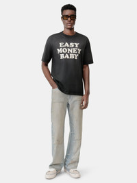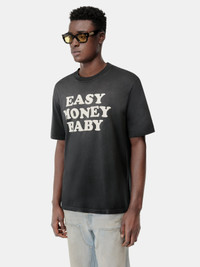 FOR PRE-FALL 2025, JERSEY TEES WITH PLAYFUL SLOGANS ARE SOFTENED AND DISTRESSED, MIMICKING TRUE VINTAGE REDISCOVERED FROM FORMER ERAS. THE EASY MONEY TEE IN COTTON IS TREATED FOR A SUN-FADED APPEARANCE AND ILLUSTRATED WITH THE SEASON'S SLOGAN GRAPHIC. PRE-FALL 2025 COLLECTION MADE IN ITALY 100% COTTON THIS GARMENT HAS UNDERGONE A SPECIAL PROCESS WHICH RESULTS IN INTENTIONAL VARIATIONS OF SHADING AND COLOR, AND ADD TO THE PIECE'S UNIQUE CHARACTERISTICS. THIS MAY LEAD TO BLEEDING OR DYE TRANSFER. PLEASE USE CAUTION WHEN WASHING OR DRY-CLEANING THIS ITEM STYLE:AMJYTE1215-001 SIZE & FIT MODEL IS WEARING SIZE M MODEL MEASUREMENTS: HEIGHT: 6’2” CHEST: 35.5" WAIST: 28" HIP: 34.5" PRODUCT MEASUREMENTS (SIZE M): CHEST: 22" SHOULDER: 18.5" LENGTH: 28" SLEEVE LENGTH: 10"""