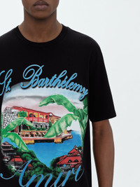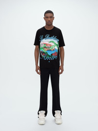 ROOTED IN TROPES OF TRAVEL MEMORABILIA AND STREET ART AESTHETICS, THIS TEE FRAMES SAINT BARTHÉLEMY'S EDEN ROCK HOTEL IN A FULL-SPECTRUM AIRBRUSH DESIGN ALONGSIDE THE AMIRI LOGO IN CURSIVE SCRIPT. MADE IN SPECIAL COLLABORATION WITH THE ICONIC LUXURY DESTINATION FOUNDED IN THE 1950S, THIS SHIRT IN BREATHABLE COTTON JERSEY IS AN IDEAL COMPLEMENT TO SHORTS OR THE HOUSE'S DENIM OFFERINGS. MODEL IS 6'1" AND WEARS A SIZE MEDIUM MADE IN USA 100% COTTON DRY CLEAN RECOMMENDED