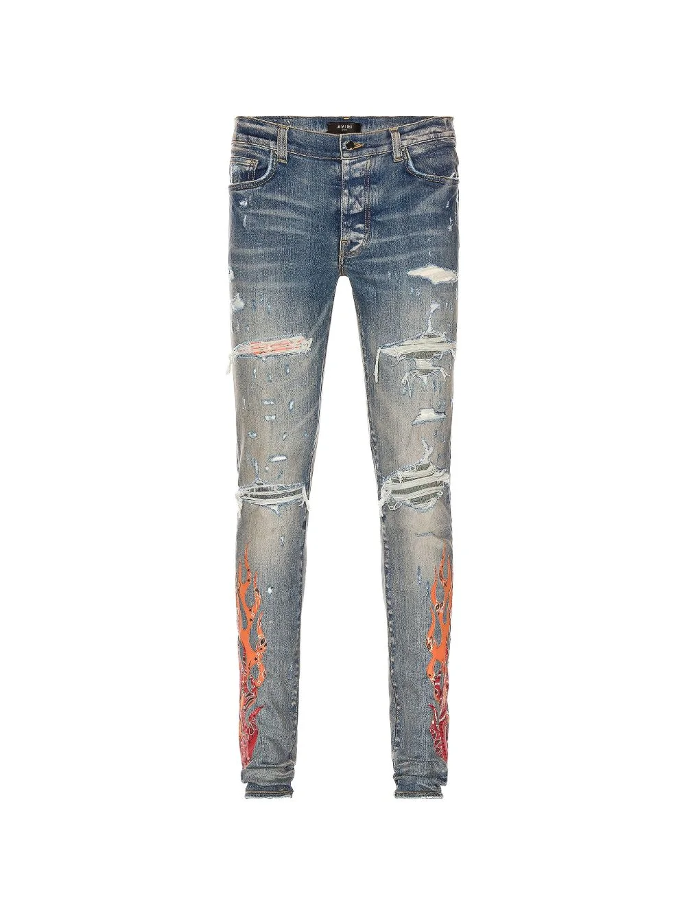 flame-print ripped jeans Highlights - Light blue - Flame detail - Ripped detailing - Button fastening Imported Composition Fabric 100% Washing instructions Read Manufacturer Guidelines