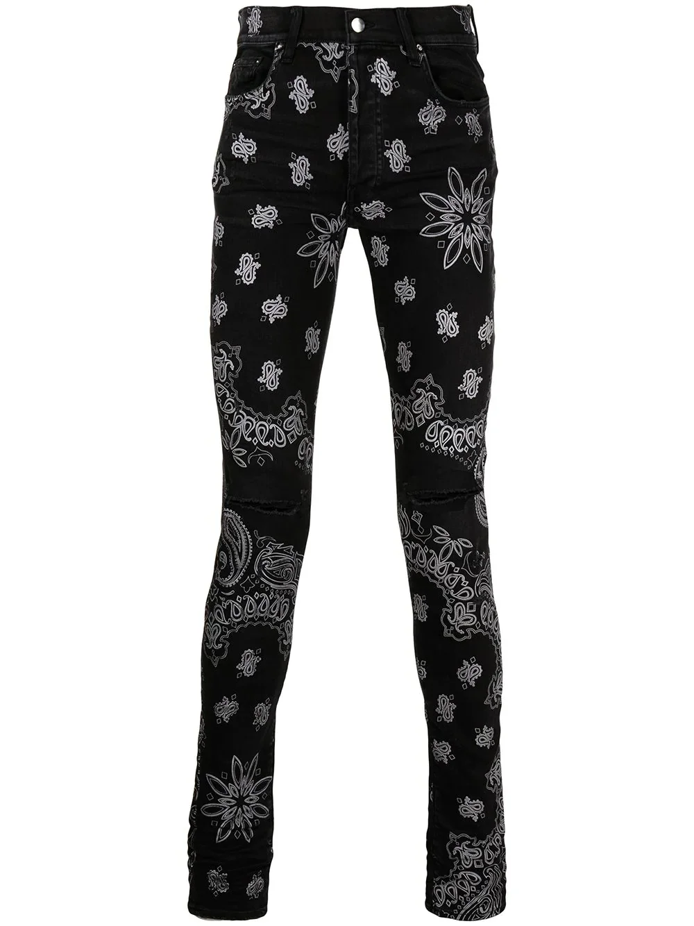 Flocked Bandana Skinny Jeans "Black" Highlights - Black - Cotton - Paisley print - Belt loops - Button fly fastening - Classic five pockets - Distressed finish - Ripped detailing - Logo patch to the rear - Slim cut Made in Italy Composition Outer: Cotton 100%