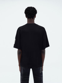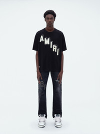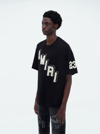THIS TEE IN SOFT COTTON FEATURES THE AMIRI DIMENSIONAL BLOCK LOGO IN A FLOCKED TREATMENT INSPIRED BY VINTAGE JERSEYS. DESIGNED IN A LOOSE, EASY FIT, THIS SHIRT IS FINISHED WITH SLEEVE "23" NUMBERING AND MA ICON AT THE HEM. AUTUMN-WINTER 2023 COLLECTION MADE IN USA 100% COTTON DRY CLEAN ONLY