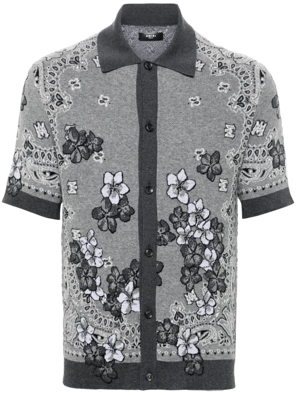 floral-jacquard knitted shirt Highlights - Black/grey - Cotton - Knitted construction - Patterned jacquard - Spread collar - Short sleeves - Ribbed cuffs and hem - Straight hem - Front button fastening Made in Italy Composition Cotton 100% SIZE & FIT Model measurements Height 6 ft 1 in(1.85 m) Bust/Chest 35.43 in(90 cm) Hips 37.79 in(96 cm) Waist 29.92 in(76 cm) FittingInformation Designed for a slim fit, offering a comfortable fit that sits just away from the body Made with a midweight knit, this piece offers some stretch This piece fits true to size – take your usual size Washing instructions Dry Clean Only