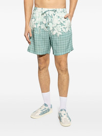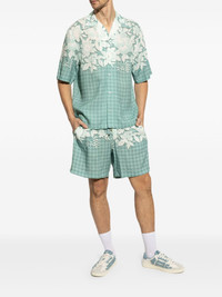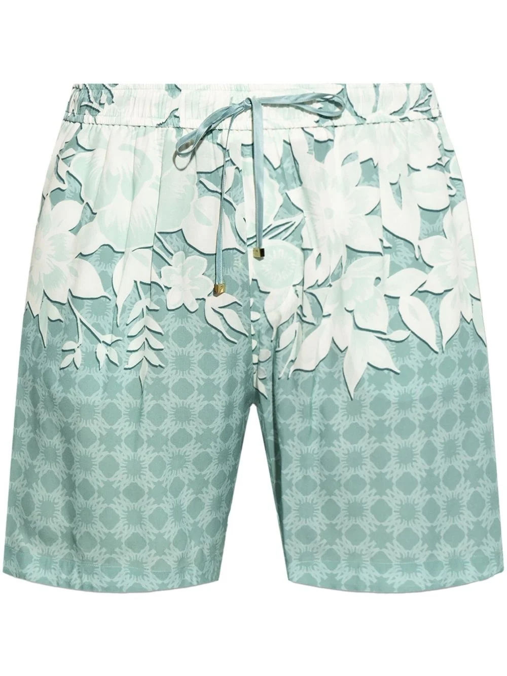 floral-print shorts Highlights - Aqua blue - Elasticated drawstring waistband - Two side slash pockets - Monogram pattern - Straight hem Made in Italy Composition Polyester 100% SIZE & FIT FittingInformation Designed for relaxed fit, offering a comfortable loose fit over the leg Adjust this piece’s waistband to your preference using the drawstring Made from a lightweight non-stretch fabric
