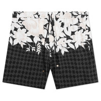 The Amiri Garden Short is crafted from lightweight viscose, offering a smooth and breathable feel. Featuring an elastic waistband with an adjustable drawstring, it’s adorned with an all-over monogram and a botanical motif. Side seam pockets and back welt pockets complete the look. - 100% Viscose - Made in Italy - Elastic waistband - Adjustable drawstring - All over print - Side seam pockets - Back welt pockets - Style No: AMSHCA1083-001