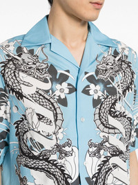 graphic-print cotton shirt Highlights - Light blue - Cotton - All-over graphic print - Pointed flat collar - Front button fastening - Short sleeves - Straight hem Made in Italy Composition Body: Cotton 100% Outer: Cotton 100% SIZE & FIT Model measurements Height 6 ft 2 in(1.87 m) Bust/Chest 34.25 in(87 cm) Hips 36.22 in(92 cm) Waist 29.52 in(75 cm) FittingInformation Designed for a relaxed fit, this piece allows for comfort and movement when worn Made from a midweight non-stretch fabric This piece fits true to size – take your usual size Washing instructions Dry Clean Only