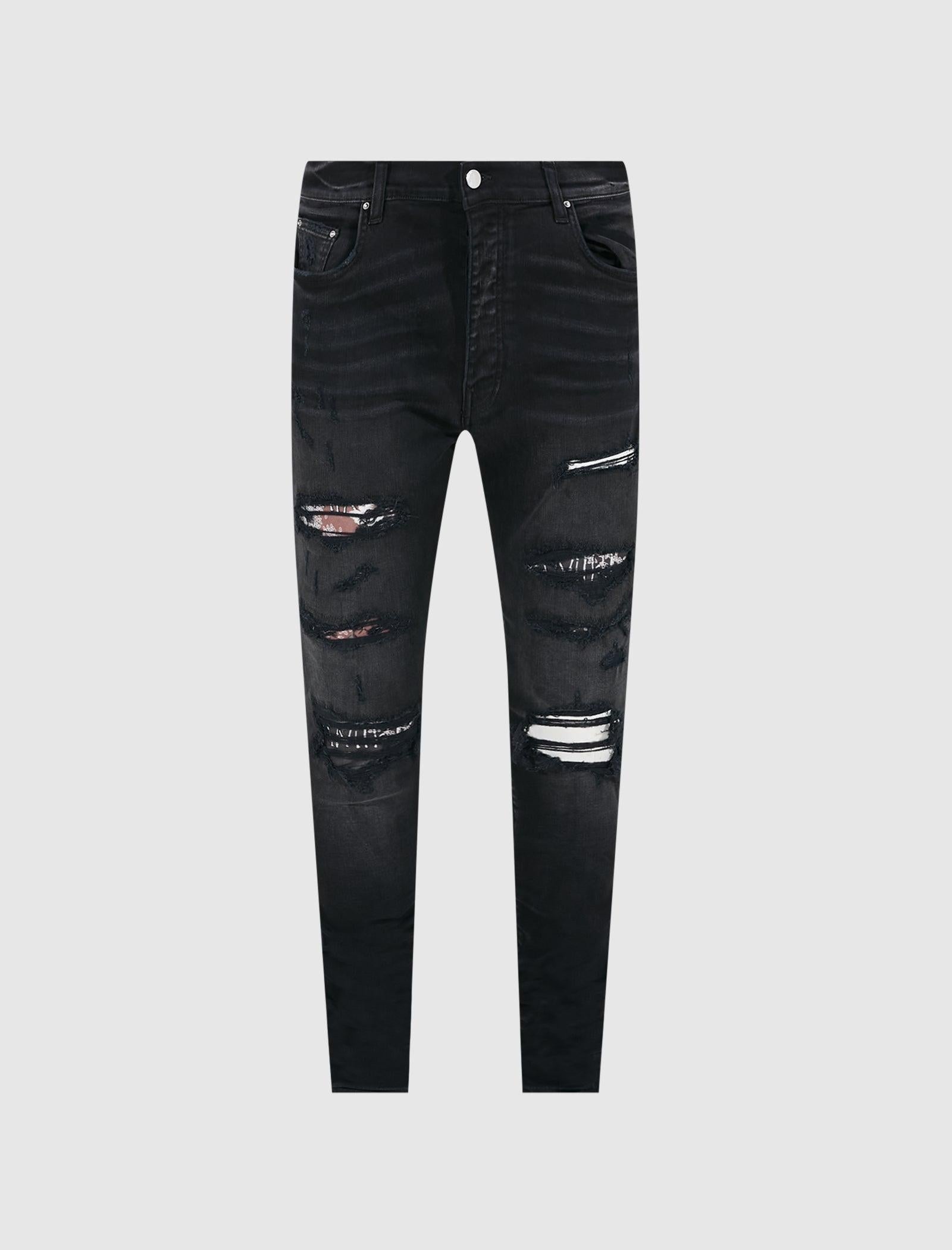 Stretch denim jeans. Five-pockets. Fading, whiskering, distressing, and graphic textile patches throughout. Button-fly closure at front. - 92% Cotton, 6% Elastomultiester, 2% Elastane SKU: SS22MDS008-023