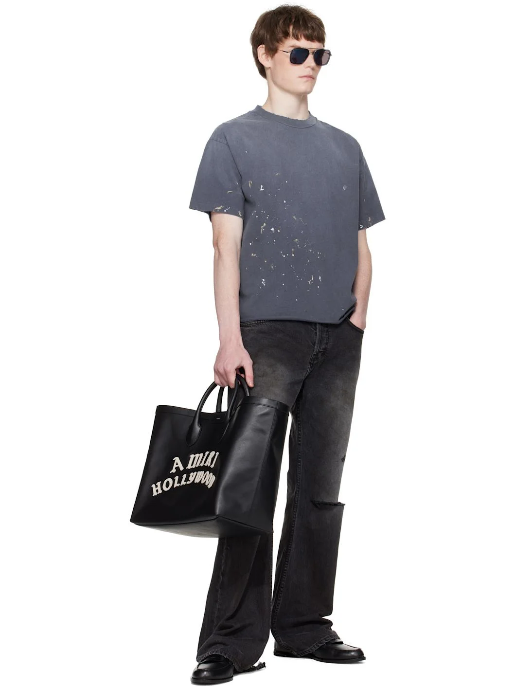 Buffed leather tote. · Rolled carry handles · Fixed shoulder straps · Logo stamp at face · Logo and text appliques at face · Clasp fastening at throat · Zip pocket at interior · Logo-woven canvas lining · H12.5" x W20" x D7" Supplier color: Black Leather. Made in Viet Nam 252886M172000
