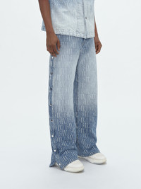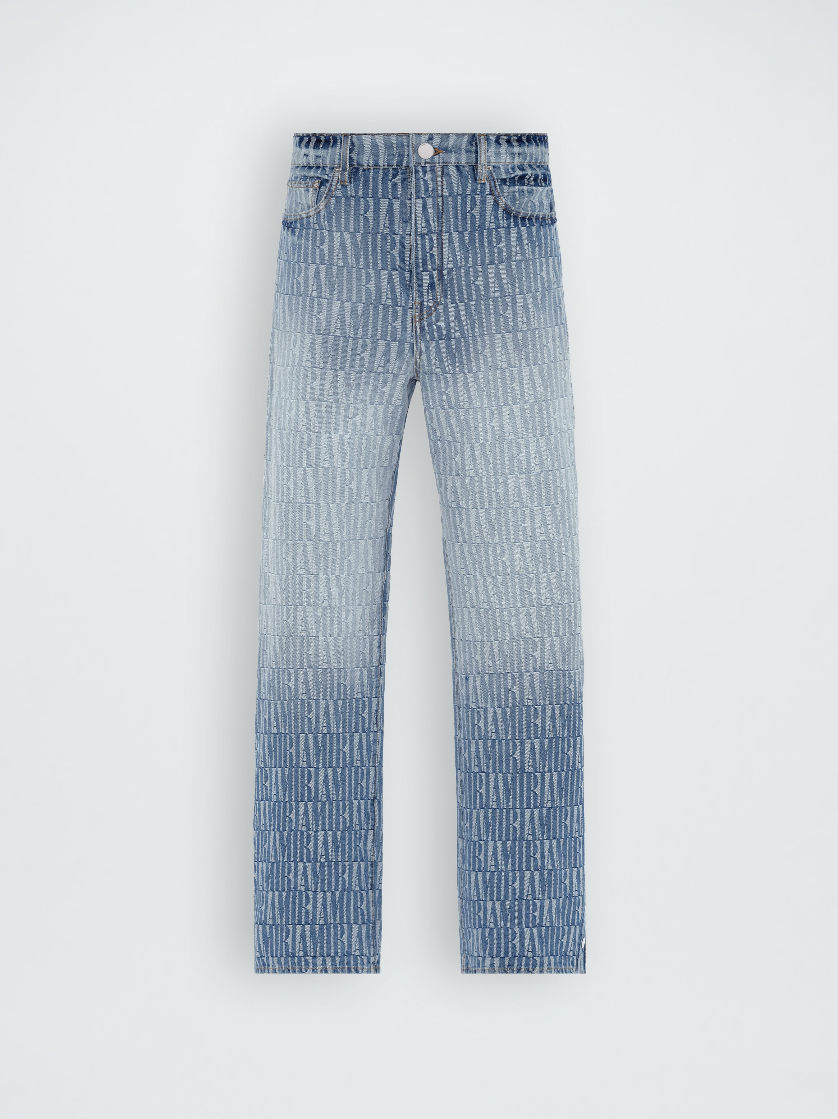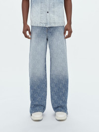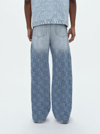 SS23 INDIGO BAGGY JEANS MADE IN LOS ANGELES, CA DENIM JACQUARD MODEL HEIGHT 6' 2", 28" WAIST, 34" INSEAM AND IS WEARING SIZE US: 29 DETAILS & CARE 100% COTTON DRY CLEAN RECOMMENDED