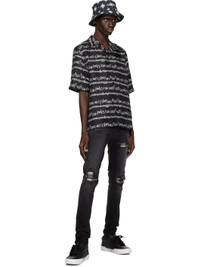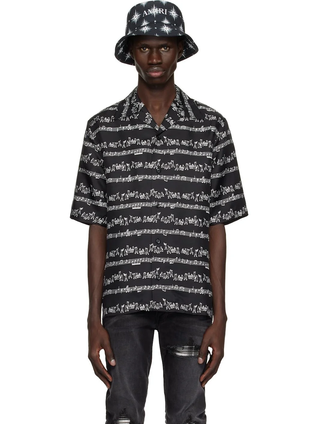 Silk twill shirt. Graphic pattern printed throughout. · Open spread collar · Button closure Supplier color: Black 100% silk. Made in Italy 251886M192044