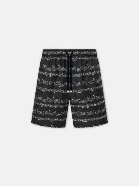 FOR SPRING-SUMMER 2025, MUSIC REMAINS AT THE HEART OF AMIRI WITH PRINTED HORIZONTAL STRIPES DEPICTING A LINEUP OF JAZZ MUSICIANS. THE JAZZ BAND SHORT IS DESIGNED IN FLUID SILK AND FINISHED WITH AN ELASTIC WAIST WITH DRAWCORD. SPRING-SUMMER 2025 COLLECTION MADE IN ITALY 100% SILK STYLE:AMSHCA1075-001 SIZE & FIT PRODUCT MEASUREMENTS (SIZE "M"): WAIST: 29.5" RISE: 12" HIP: 47" INSEAM: 6.25" NORMAL FIT