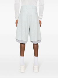 layered bermuda shorts Highlights - Light blue - Cross hatch texture - Melange effect - Belt loops - Two side slash pockets - Pleat detailing to the front - Logo patch to the front - Layered details to the hem - Lurex detailing to the underlayer - Below-knee length - Two rear welt pockets - Full lining - Concealed front button, hook and zip fastening Made in Italy Composition Outer: Wool 47%, Cotton 39%, Polyamide 14% Lining: Viscose 100% Washing instructions Dry Clean Only