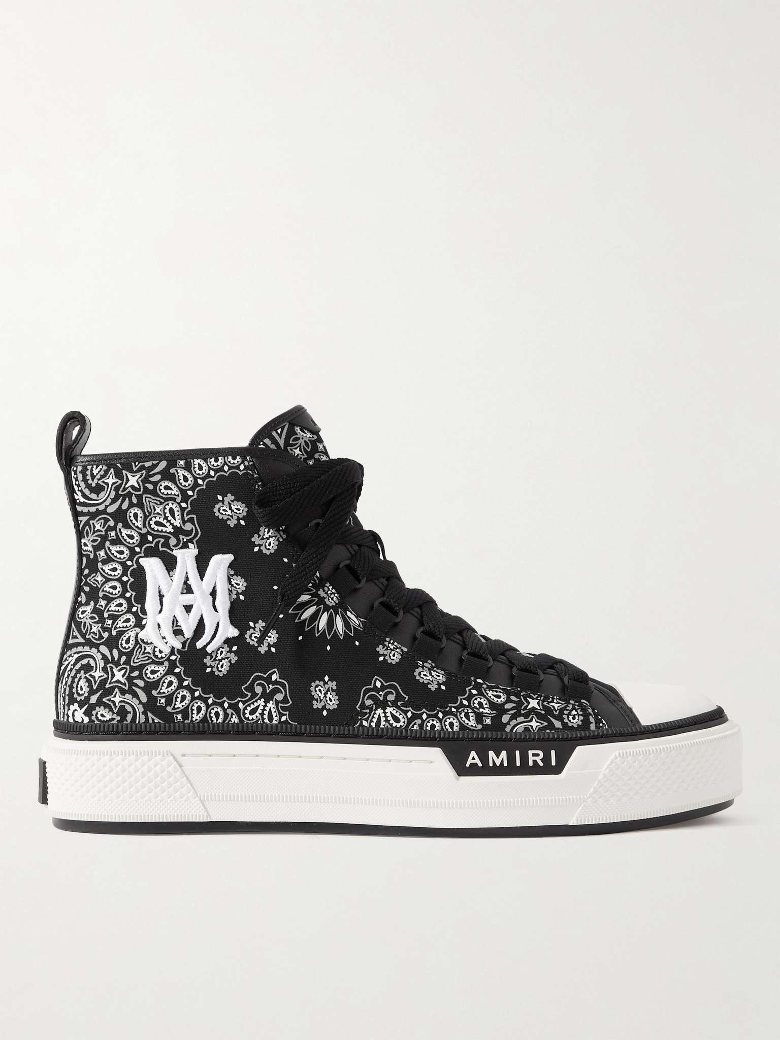 AMIRI's sneakers have a cool, rock 'n' roll feel thanks to the black leather trims and bandana print. They're made from hard-wearing canvas and set on thick rubber soles. Size & Fit - Fits true to size. Take your normal size - Only available in full sizes, go up to the nearest whole size if you take a half size - European sizing Details & Care - Black and white canvas, black leather - Lace-up - This item has been imported