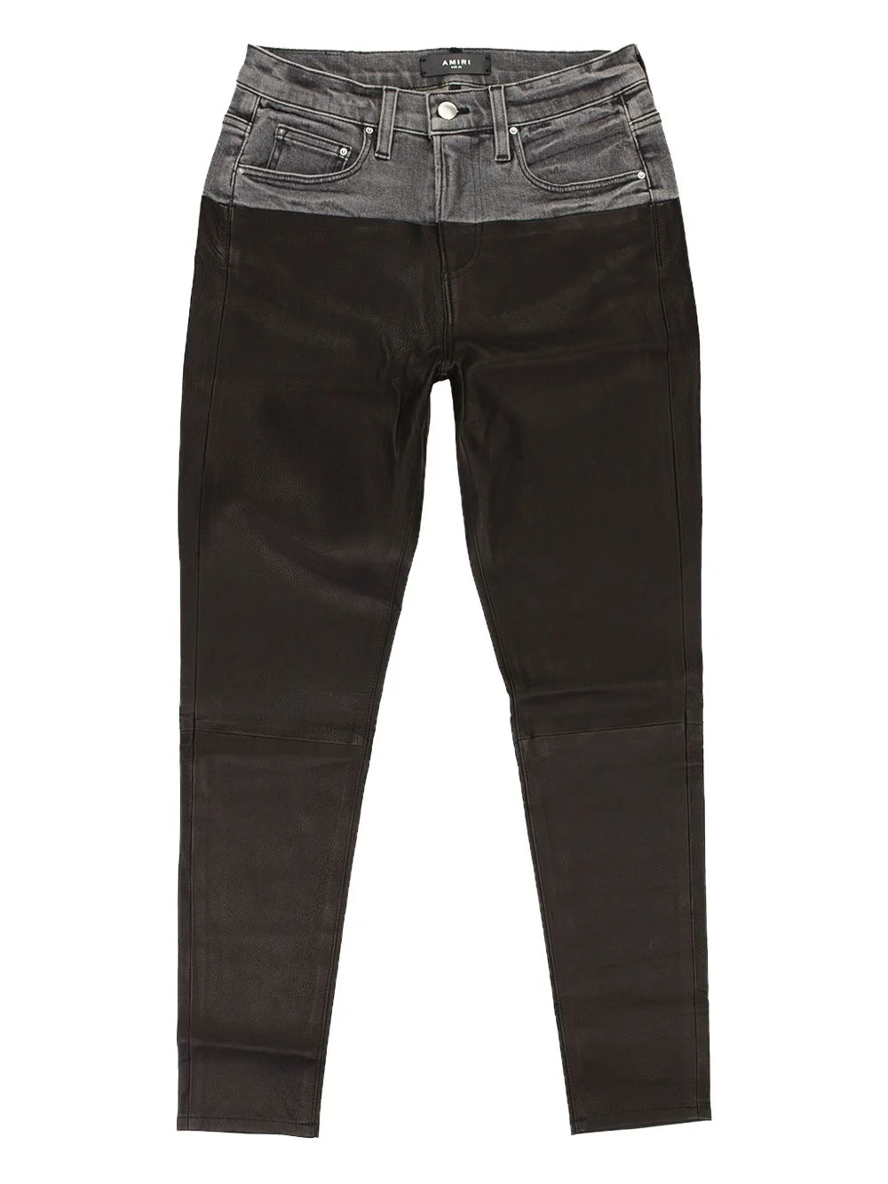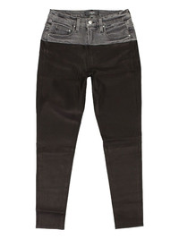 leather trousers Highlights - Black - Concealed fly and button fastening - Two-tone design - Belt loops - Classic five pockets - Rivet detailing Imported Composition Calf Leather 100%, Fabric 100%