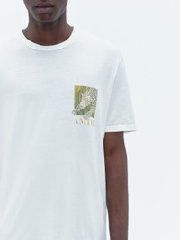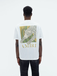 AN ARTFULLY ILLUSTRATED LEOPARD LEAPS INTO FRAME ON THIS SOFT COTTON TEE. FINISHED WITH THE AMIRI LOGO AND DESIGNED IN AN EASY, CLASSIC FIT, THIS TEE IS A PERFECT COMPLEMENT TO HOUSE DENIM STYLES. PRE-SPRING 2024 COLLECTION MADE IN USA 100% COTTON DRY CLEAN ONLY