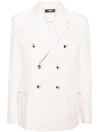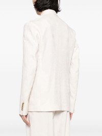 linen-cotton blend blazer Highlights - Ivory white - Linen-cotton blend - Double-breasted button fastening - Logo-embroidered collar - Two side flap pockets - Buttoned cuffs Made in Italy Composition Outer: Linen/Flax 70%, Cotton 30% Lining: Viscose 100% SIZE & FIT Model measurements Height 6 ft 2 in(1.87 m) Bust/Chest 33.07 in(84 cm) Hips 35.43 in(90 cm) Waist 26.77 in(68 cm) FittingInformation Designed to be unstructured, offering a loose fit throughout The sleeves are constructed with additional length and built-in thumb loops that allow for movement and a secure fit Made from a midweight non-stretch fabric This piece fits true to size – take your usual size